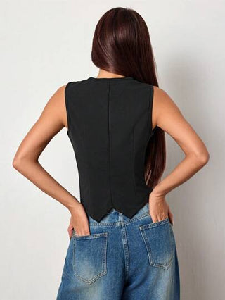 Unity السترة الصوفية القطنية والسادة بياقة V بدون أكمام مصممة بشكل ملائم للسيدات