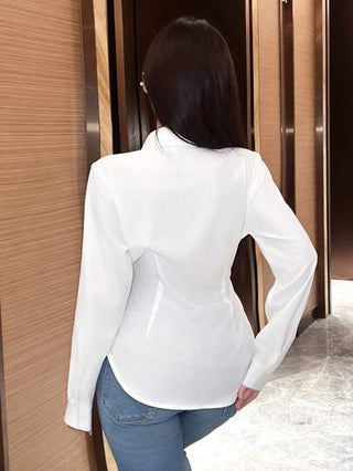 Unity بلوزة نسائية طويلة الأكمام ذات لون واحد بتصميم ربطة، قميص نسائي للربيع والخريف، بلوزة طويلة الأكمام