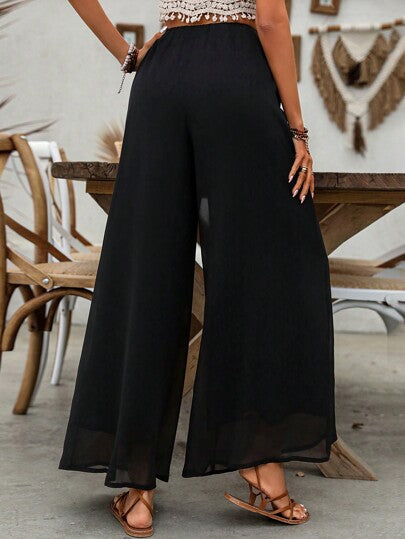Unity بنطلون طويل ساق واسع ونمط لون سادة للنساء، ملابس رمضان