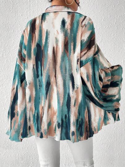 Unity قميص متعدد الألوان برقبة اربطة الأكمام الواسعة والكشكشة، أكمام طويلة، مناسب للنساء للربيع والصيف للعطلات والمكتب والخروج (باستثناء الحزام)