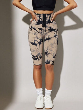 VARSITIE بنطلون ليقنز أساسي ليوغا صيفي للرياضة مع تحكم منطقة البطن وخياطة لاصقة ونقوش،