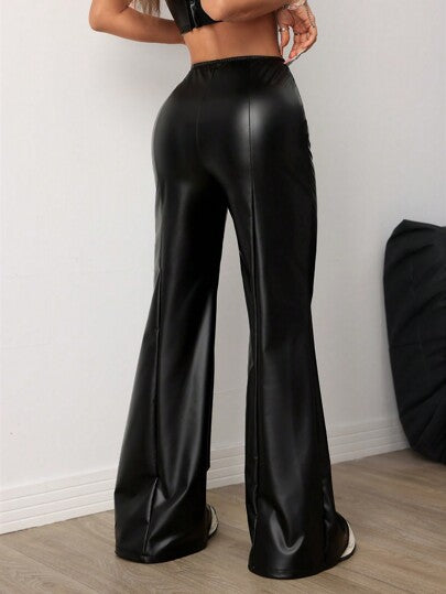 VaVaBold بنطلون ذو خصر عالي أسود جلد اصطناعي مطاطي
