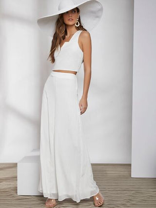 VCAY بنطلون نسائي بقصة ساق واسعة وأحادية اللون للارتداء اليومي العادي