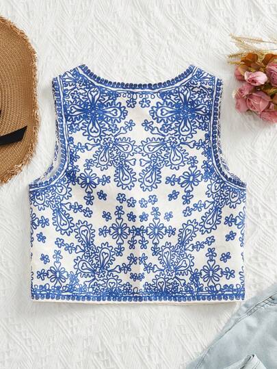 VCAY جاكيت بأكمام منسوجة وبطبعات فتاة أمامية مربوطة بتناسق