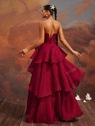 VIPGIRL فستان أنيق تحت الكتف أحمر داكن متدرج مع قصة كبيرة وشق علوي، فستان سهرة طويل لأرضية، فستان سهرة رسمي للنساء، فستان حفلة سهرة راقي، فستان حفل راقي، فساتين رسمية ومسائية للنساء، فستان ضيف الزفاف
