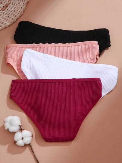 VKME 4 قطع داخلية سراويل نسائية للملابس الداخلية برباط للنساء بتفصيل دانتيل سلس