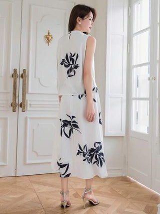 Wynsel طقم نسائي مكون من قطعتين بطبعة نباتات استوائية، مكون من لباس علوي شيفون وتنورة على شكل حرف A