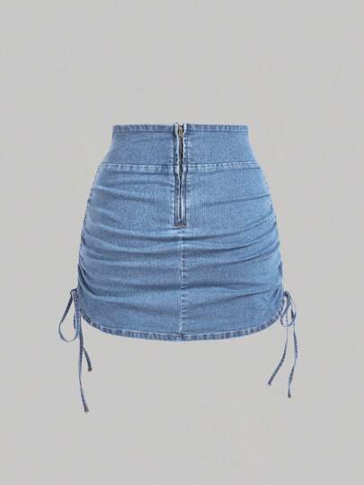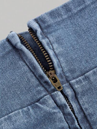 x Lina MOD تنورة جينز كاجوال للنساء مع سحاب خلفي وتصميم مطوي جانبي