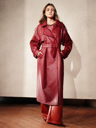 X Lucía Bellido Anewsta معطف أنجورا أحمر أنيق طويل للنساء، ذو إغلاق مزدوج ، أنيق وعصري للربيع والخريف