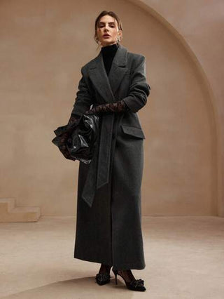 X Lucía Bellido Anewsta معطف بطول أوسط للنساء باللون الرمادي مع ربطة الخصر وياقة مفرودة