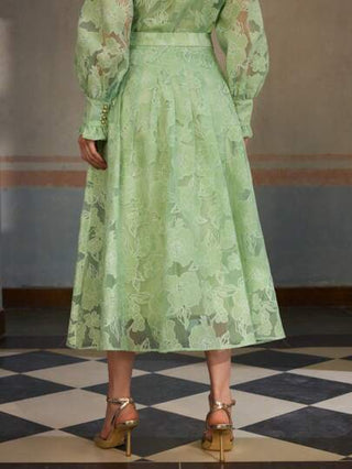 ZEYLAH تنورة نسائية ذات لون أحادي مطعمة بفتحات ليزر وطية أنيقة مع سحاب