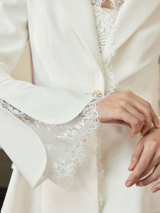 ZEYLAH سترة مكشوفة منحنية الذيل بتصميم غير متماثل مع تطريز الدانتيل اللافت للنظر
