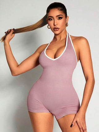 Zolique جمبسوت رياضية ضيقة بياقة عميقة على شكل حرف V ملونة محبوكة