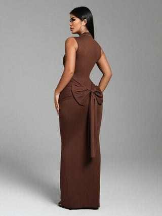 Zolique فستان نسائي عنق مزيف مربوط من الأمام، جذاب وأنيق