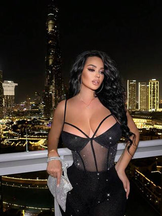 Zolique وحدة أنثوية جسم كامل ذات قصة مثيرة مزدانة بقماش لامع ولها فتحات على شكل عظم السمكة، بدلة حفلة جمالية